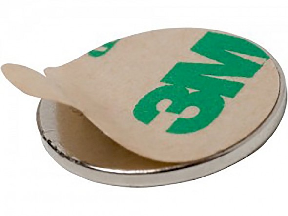 Neodymium (rare earth) or NdFeB adhesive backed disc magnets are round coin-shaped magnets of varying diameter and thickness which have an adhesive backed layer on one pole. The adhesive layer is a 3M adhesive with a protective backing strip - simply remove the protective backing strip and press the adhesive backed Neodymium disc magnets onto the item you want to adhere to. The adhesive layer is placed on one magnetic pole. So a North described adhesive backed NdFeB disc magnet has the magnetic North pole visible and the magnetic South pole has the adhesive backing. A South described adhesive backed Neodymium disc magnet has the magnetic South pole visible and the magnetic North pole has the adhesive backing.