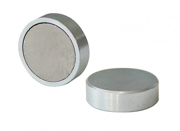 The blind ended shallow pot magnet is a pot magnet that is generally wider in diameter than it is tall, it consists of a magnet (usually a disc magnet) inside a ferromagnetic (mild steel) cup.